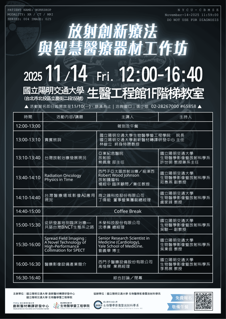 11/14(五)放射創新療法於智慧醫療器材影像工作坊